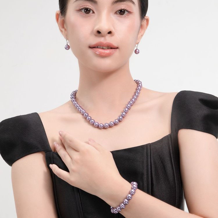Bộ chuỗi cổ ngọc trai Akoya Tím Hồng bao gồm dây chuyền dài 46cm, vòng tay 17cm, và đôi bông tai được chế tác đồng bộ từ bạc S925 chống kích ứng da, giúp sản phẩm bền đẹp và an toàn cho người sử dụng. Mỗi chi tiết đều được gia công thủ công tỉ mỉ, thể hiện sự chỉn chu và tinh tế đặc trưng của Shine Pearl – thương hiệu luôn coi trọng chất lượng và cảm xúc người đeo.